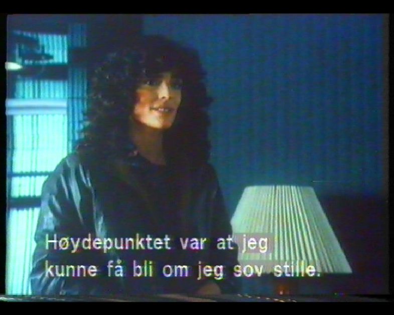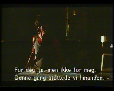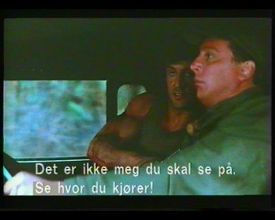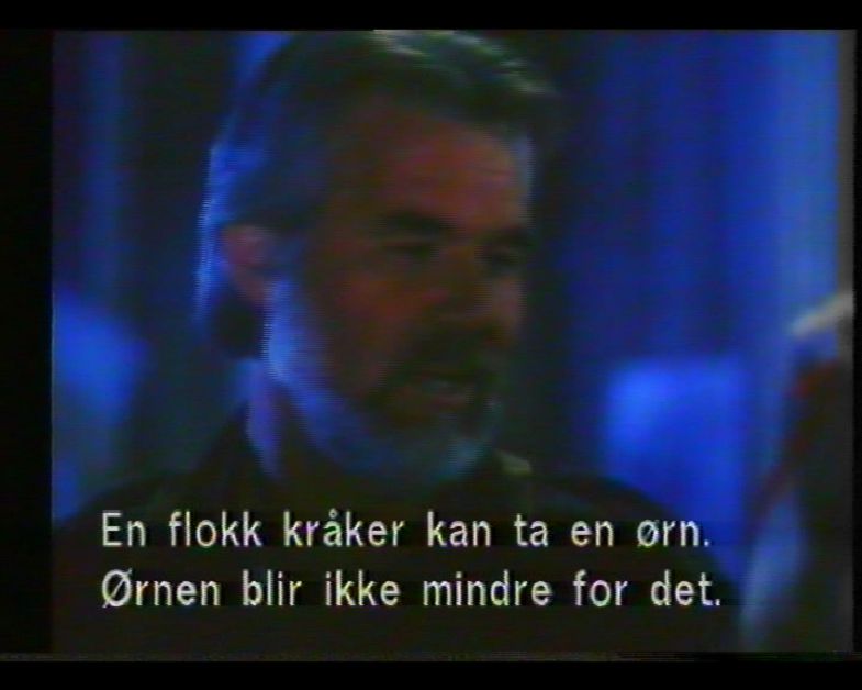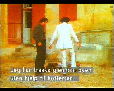 Here the strips are almost invisible, but is probably due to the footage scene is mostly in the dark too. We can notice that the font seems to be a little bit taller than the other typical subtitles presented here. Most likely back in the days, there were 2-3 hardware machines with possible different font-sets that the subtitle operator could choose from, who knows!