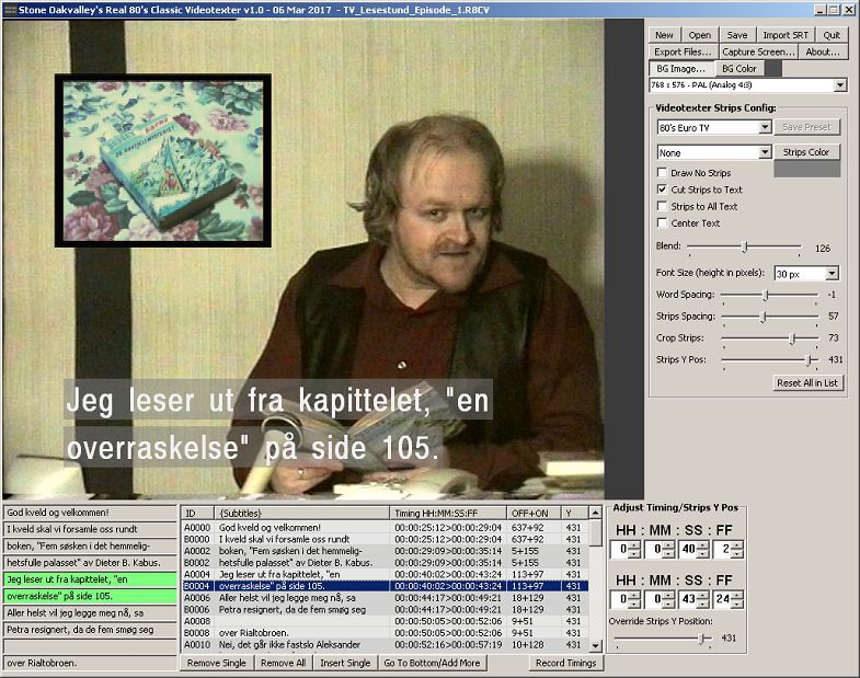 The screenshots and information provided below can be used as reference when you are editing/compositing subtitles from SOCRV to match closely the look and feel from the classic TV and VHS subtitles from the 80's (or later if you want).
