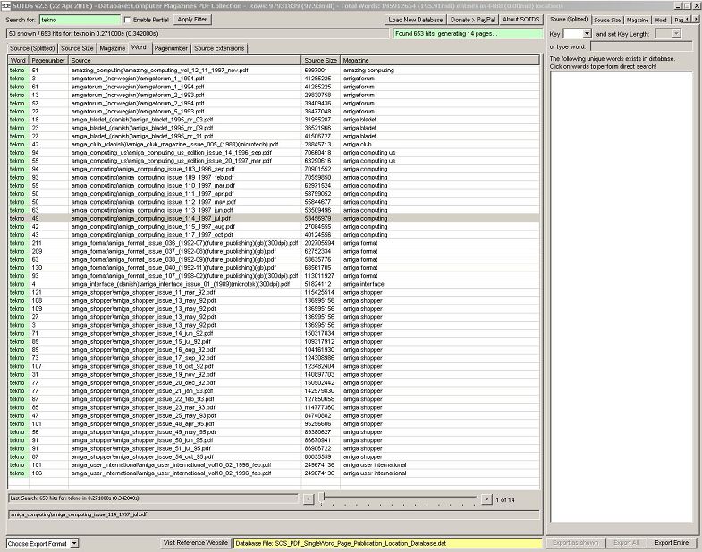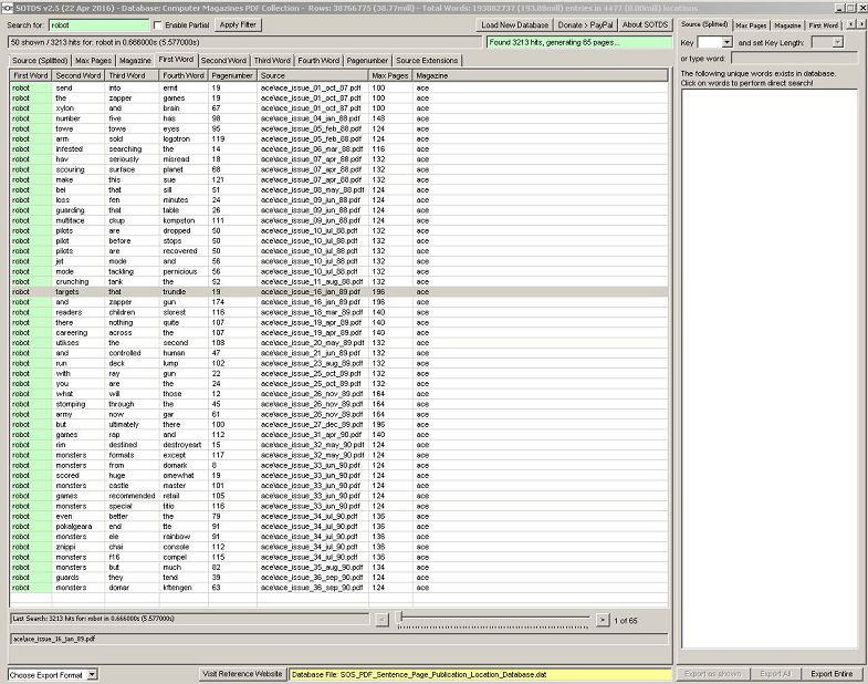 It should be noted that the database comes in two variations (single word on page and 4-word as-is, sentence like from page) which are searchable or viewable. The word or 4-word sentence given back during search hits appears on the page indicated, so if you have the magazine yourself (either physical paper or PDF version), you can read the rest in that naturally :-)