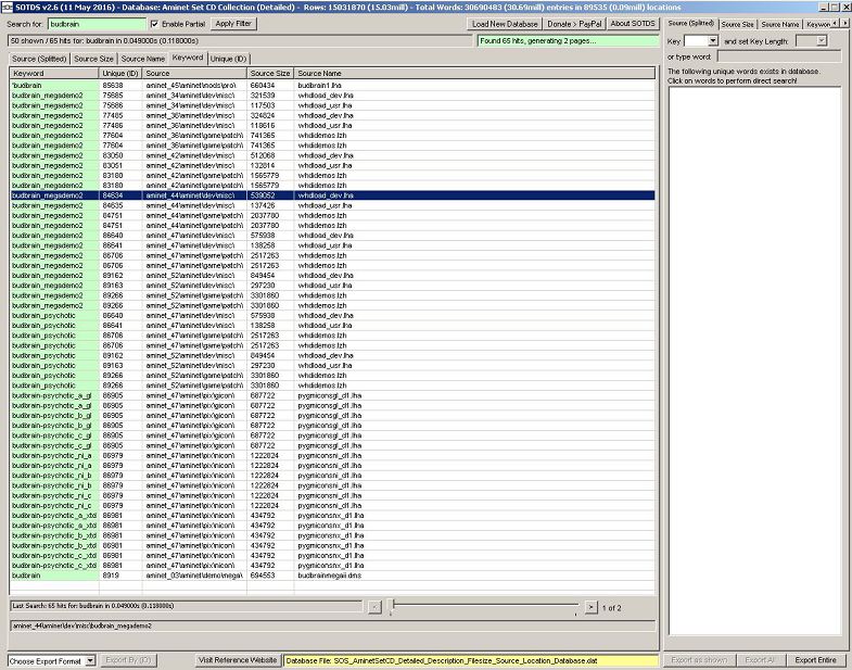 Further, this database features SOTDS Unique ID mode which enables you to show most of the extracted text from the same source location. Nice feature to read more after you found a hit for a single word.