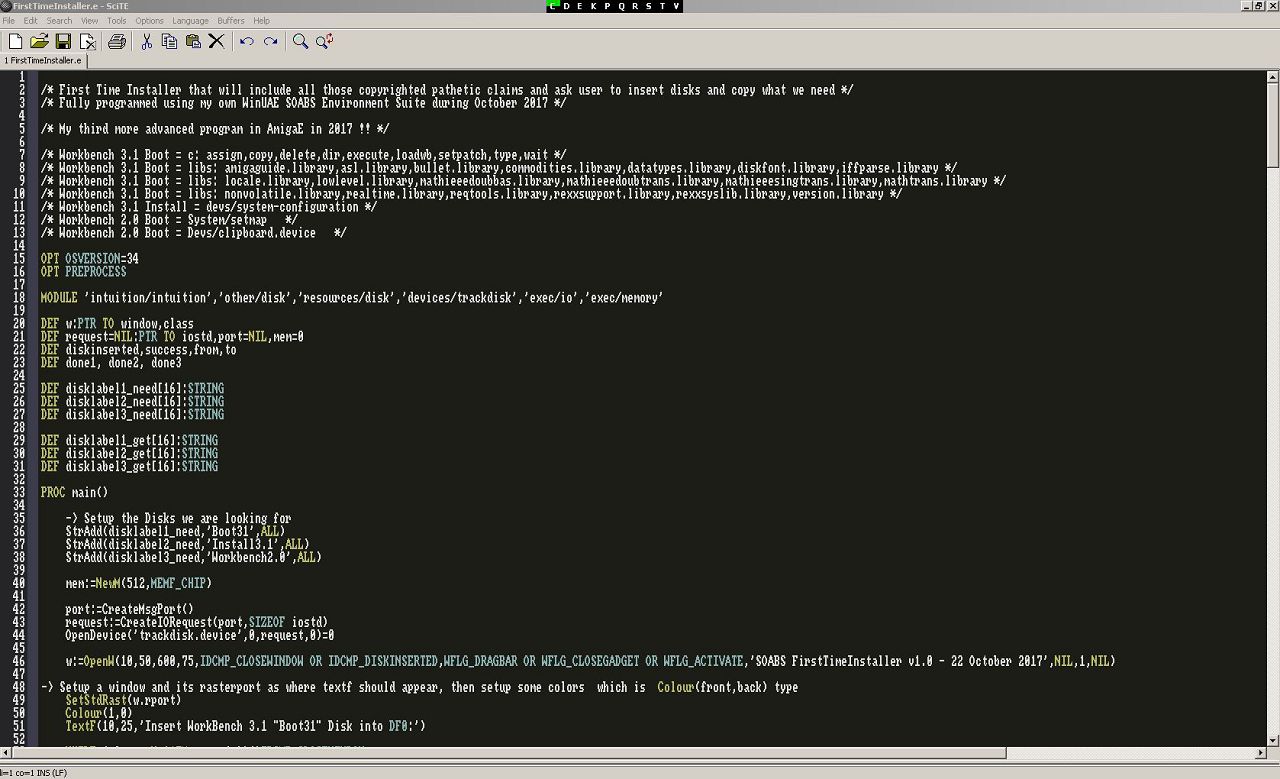 I made several improvements to my installer as well, now includes WinUAE 3.6.0, Crimson Editor portable and SOABS_FirstTimeInstaller which will deal with file extension registry to make everything work out of the box for any WindowsXP and Windows7 (don't care about Win8, 8.1 and the bullshit Win10, so for that matter you are completely on your own as NO SUPPORT will be given from me on those new-age crapped out Operating Systems from Microsoft).