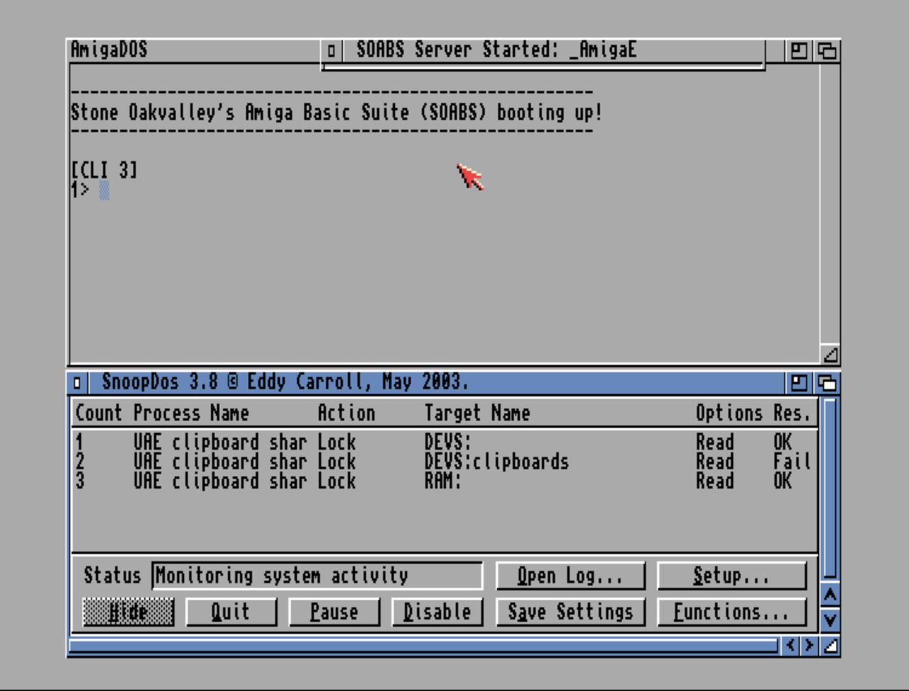 07: Create a "Serve&Compile" option that will allow a single WinUAE (once booted) to automatically detect a "new" compilation coming (instead of either quitting WinUAE after your compiled program as run and exit, or starting duplicates of WinUAE that eats up your Windows/Taskbar logic). Will either be a small tool programmed on Amiga/AMOS or some kind of Arexx stuff running on the Amiga side for real time detection of "new" compilation received = DONE.