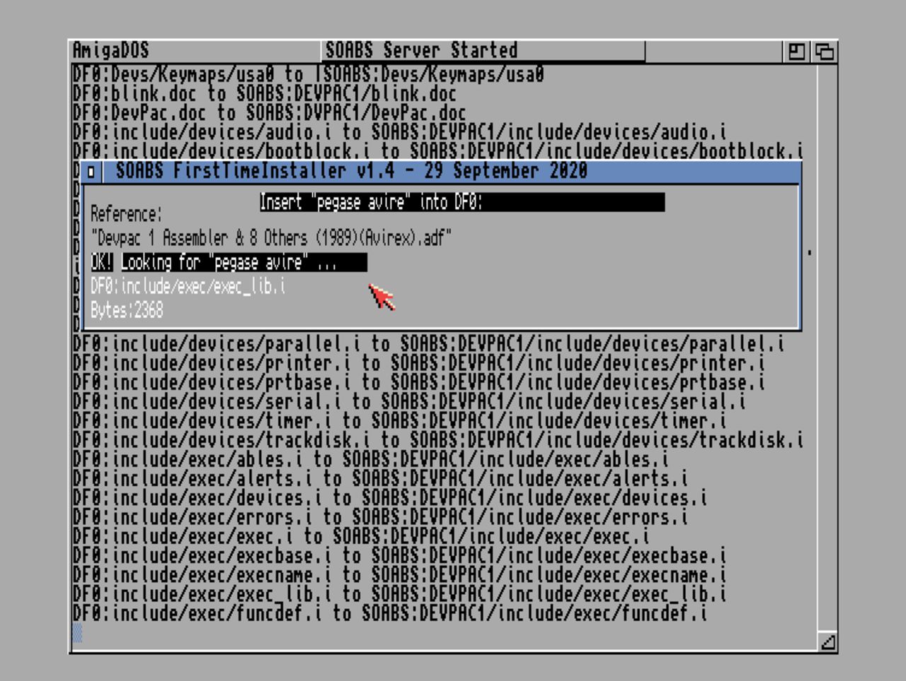 The installer on the Amiga-side was programmed by me by using this very SOABS programming suite on PC to produce AmigaE compiled code within WinUAE :-)