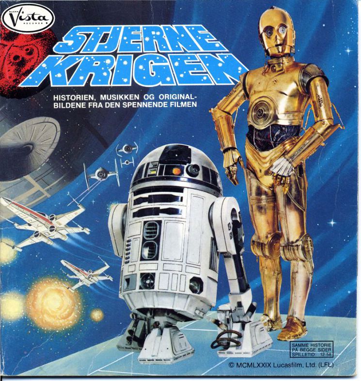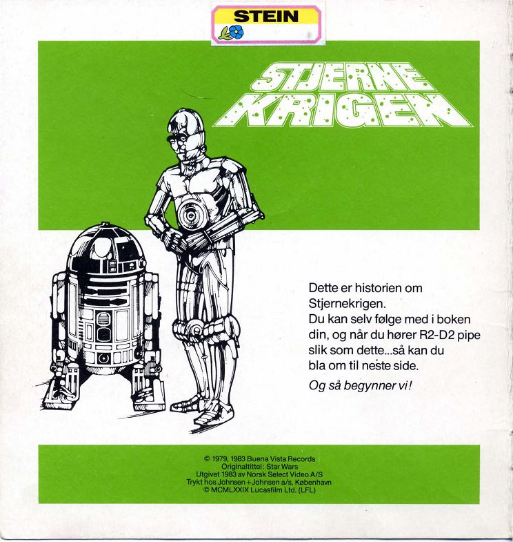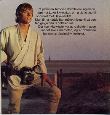 Dette er historien om Stjernekrigen. Du kan selv følge med i boken din, og når du hører R2-D2 pipe slik som dette ... så kan du bla om til neste side. Og så begynner vi!