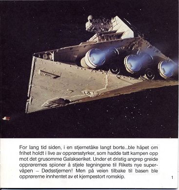 For lang tid siden, i en stjernetåke langt borte ... ble håpet om frihet holdt i live av opprørsstyrker, som hadde tatt kampen opp mot det grusomme Galakseriket. Under et dristig angrep greide opprørernes spioner å stjele tegningene til Rikets nye supervåpen - Dødsstjernen! Men på veien tilbake til basen ble opprørerne innhentet av et kjempestort romskip.