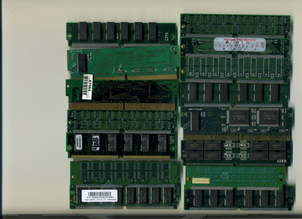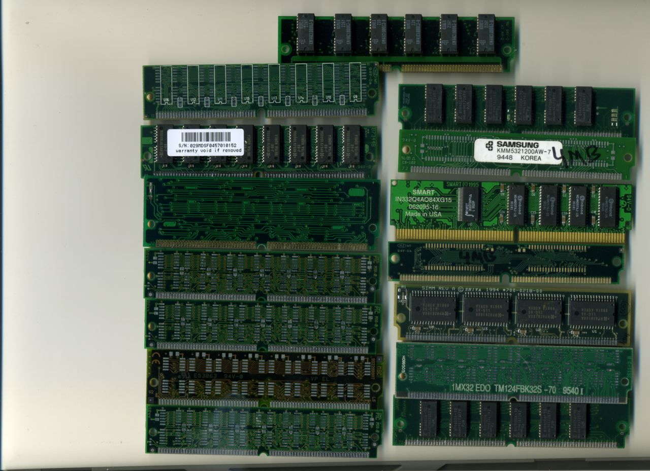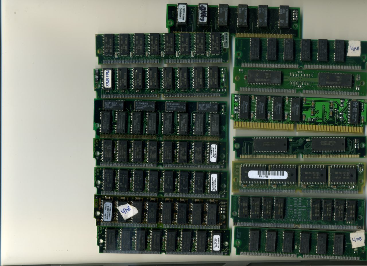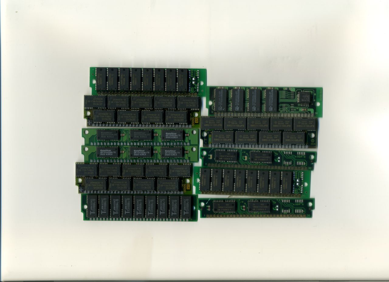 The range goes from 1MB to 4GB memory sizes, 30-pin, 72-pin, SDRAM, DIMM and cache types are pretty much covered. I believe the age of these are late 80's and kind of into the late 2020's at least.