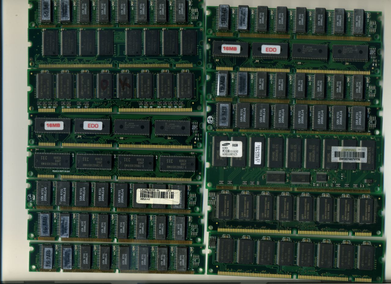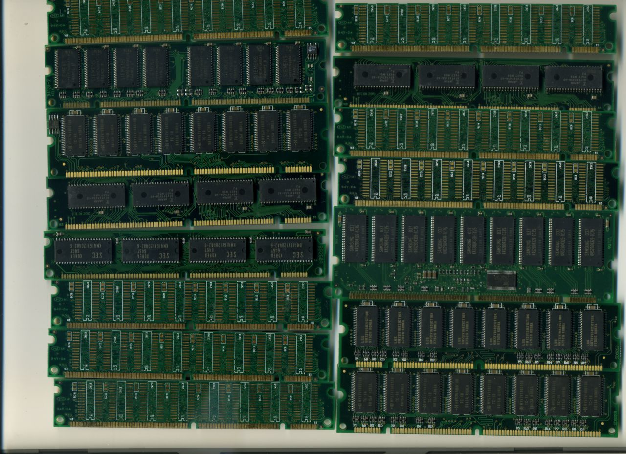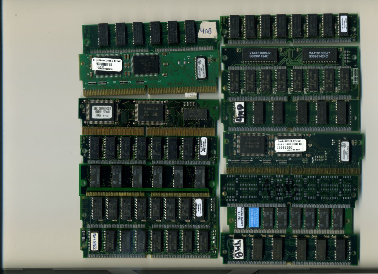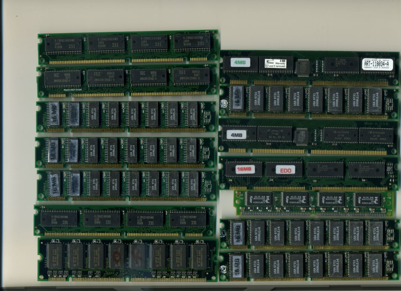 The range goes from 1MB to 4GB memory sizes, 30-pin, 72-pin, SDRAM, DIMM and cache types are pretty much covered. I believe the age of these are late 80's and kind of into the late 2020's at least.