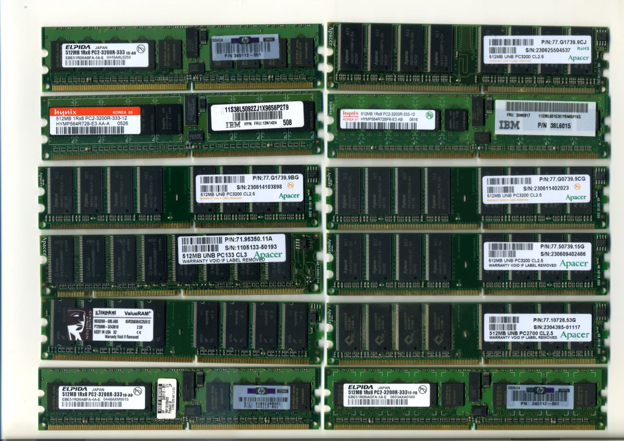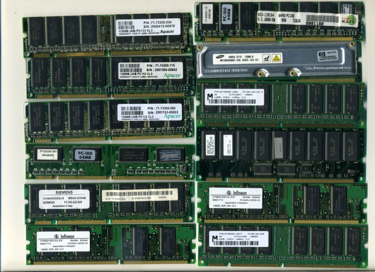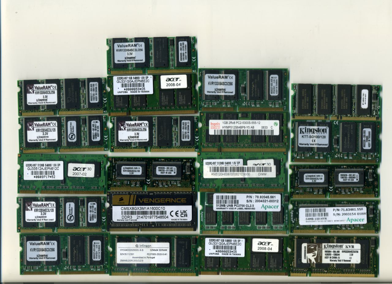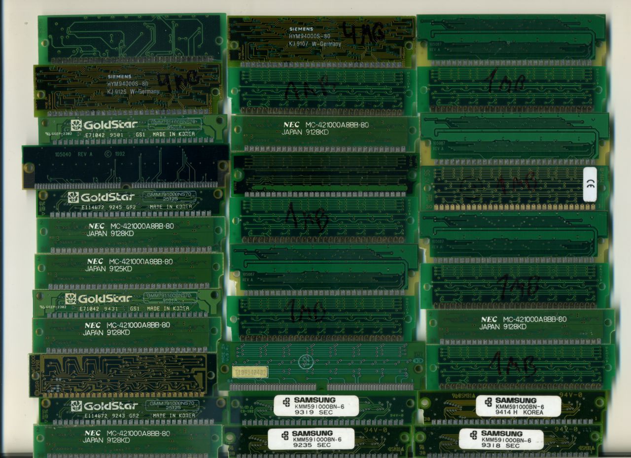 The range goes from 1MB to 4GB memory sizes, 30-pin, 72-pin, SDRAM, DIMM and cache types are pretty much covered. I believe the age of these are late 80's and kind of into the late 2020's at least.