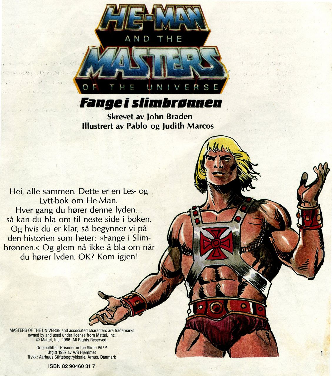 Hei, alle sammen. Dette er en Les- og Lytt-bok om He-Man. Hver gang du hører denne lyden...så kan du .bla om til neste side i boken. Og hvis du er klar, så begynner vi på den historien som heter: "Fange i Slimbrønnen." Og glem nå ikke å bla om når du hører lyden. OK? Kom igjen!