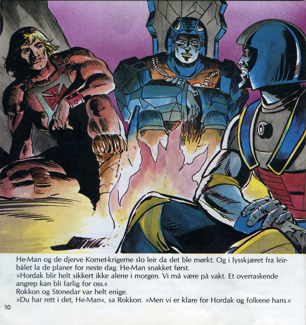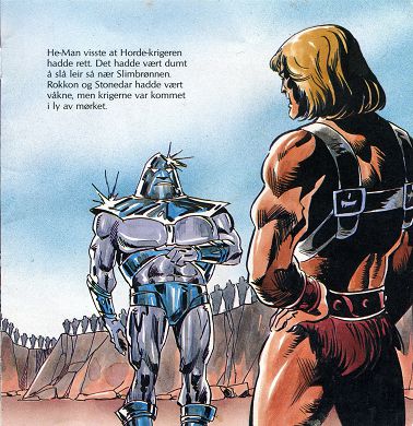He-Man og de djerve Komet-krigerne slo leir da det ble'mørkt. Og i lysskjæret fra leirbålet la de planer for neste dag. He-Man snakket først. "Hordak blir helt sikkert ikke alene i morgen. Vi må være på vakt. Et overraskende angrep kan bli farlig for oss." Rokkon og Stonedar var helt enige. "Du har rett i det, He-Man", sa Rokkon. "Men vi er klare for Hordak og folkene hans."