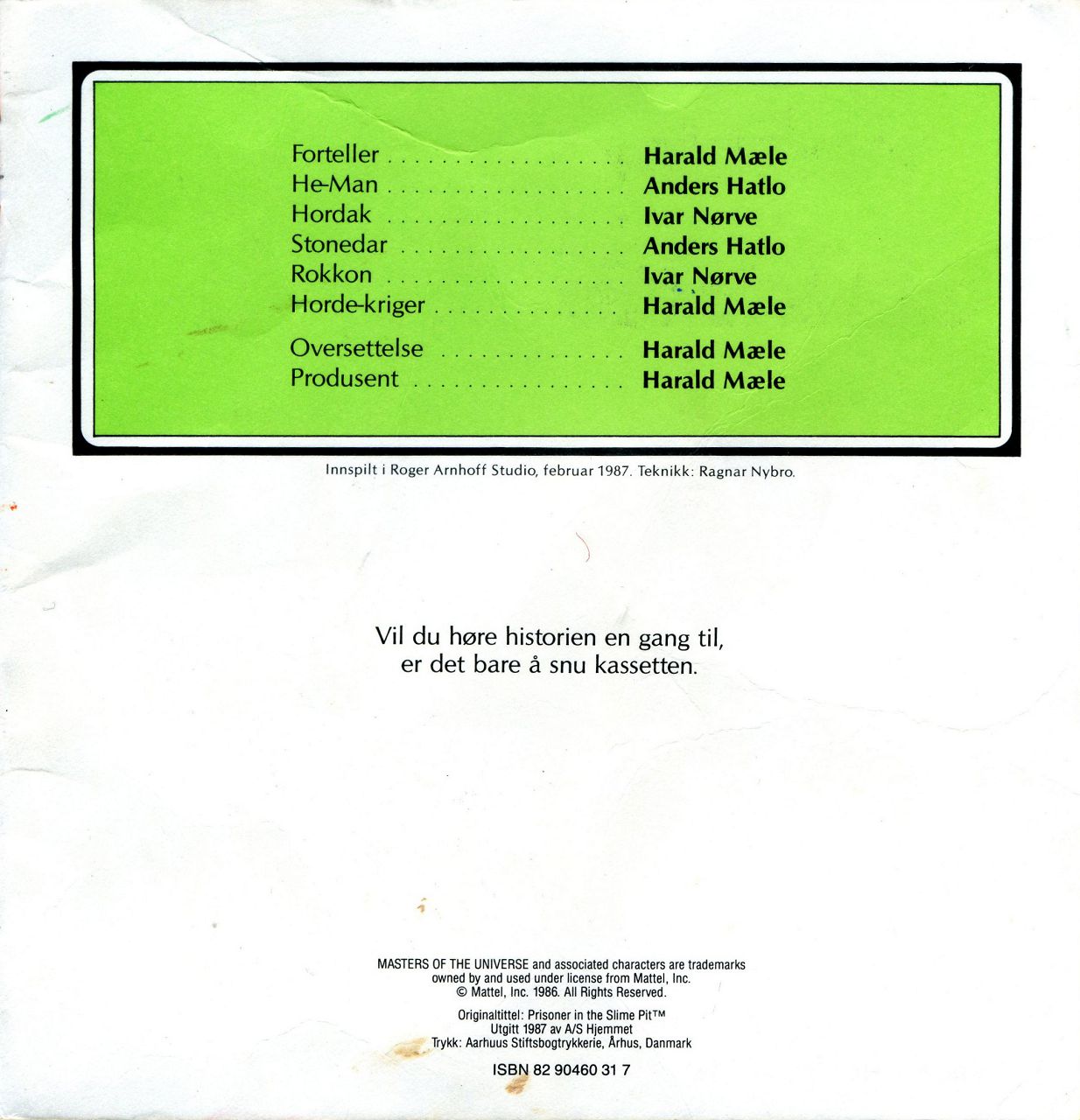 Innspilt i Roger Arnhoff Studio, februar 1987. Teknikk: Ragnar Nybro.