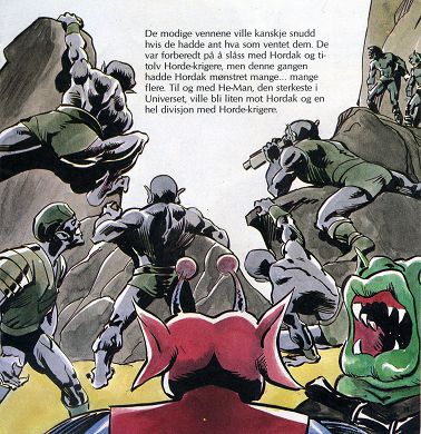 De modige vennene ville kanskje snudd hvis de hadde ant hva som ventet dem. De var forberedt på å slåss med Hordak og ti-tolv Horde-krigere, men denne gangen hadde Hordak mønstret mange.... mange flere. Til og med He-Man, den sterkeste i Universet, ville bli liten mot Hordak og en hel divisjon med Horde-krigere.