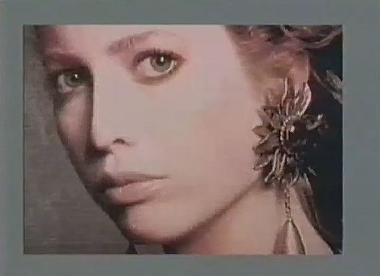 Woman face with a large earring. From video: Picture is called "Earrings".