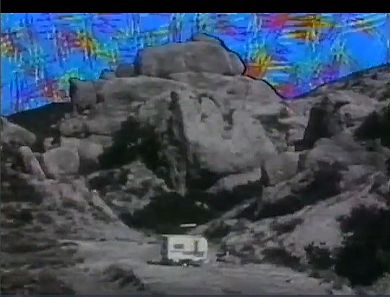 From video: They used clips generated using an Amiga from a music video called "The Future's So Bright I Gotta Wear Shades" by Timbuk 3.