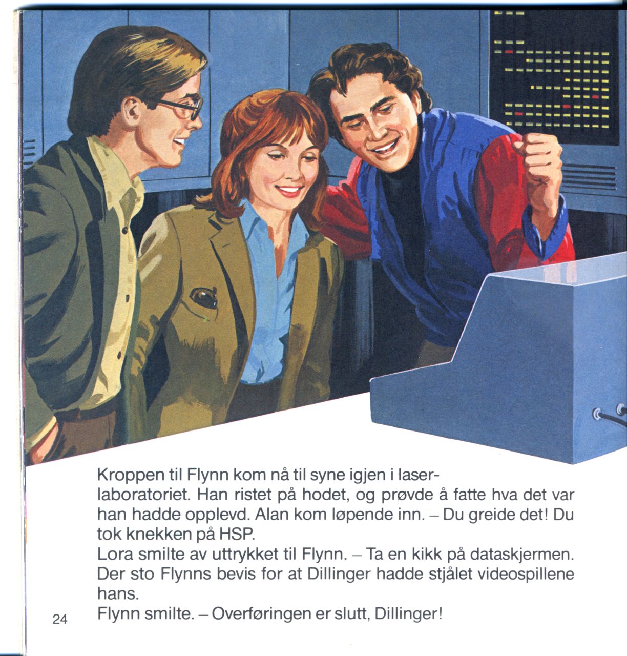 Lora smilte av uttrykket til Flynn. - Ta en kikk på dataskjermen. Der sto Flynns bevis for at Dillinger hadde stjålet videospillene hans.