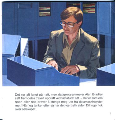 Det var alt langt på natt, men dataprogrammerer Alan Bradley satt fremdeles travelt opptatt ved tast at uret sitt. - Det er som om noen eller noe prøver å stenge meg ute fra datamaskinsystemet! Når jeg tenker etter så har det vært slik siden Dillinger tok over selskapet.