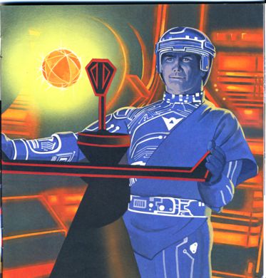 - Start opp, Yori! Jeg skal holde dem unna! Tron kastet den kraftige dataplanen mot angriperne, som ble liggende strødd omkring som kjegler. Platen vendte lydig tilbake til Tron.