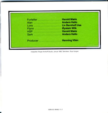 Forteller - Harald Mæle Alan - Anders Hatlo Lora - Liv Bernhoft Usa Flynn - Øystein Wiik HSP - Harald Mæle Sark - Anders Hatlo