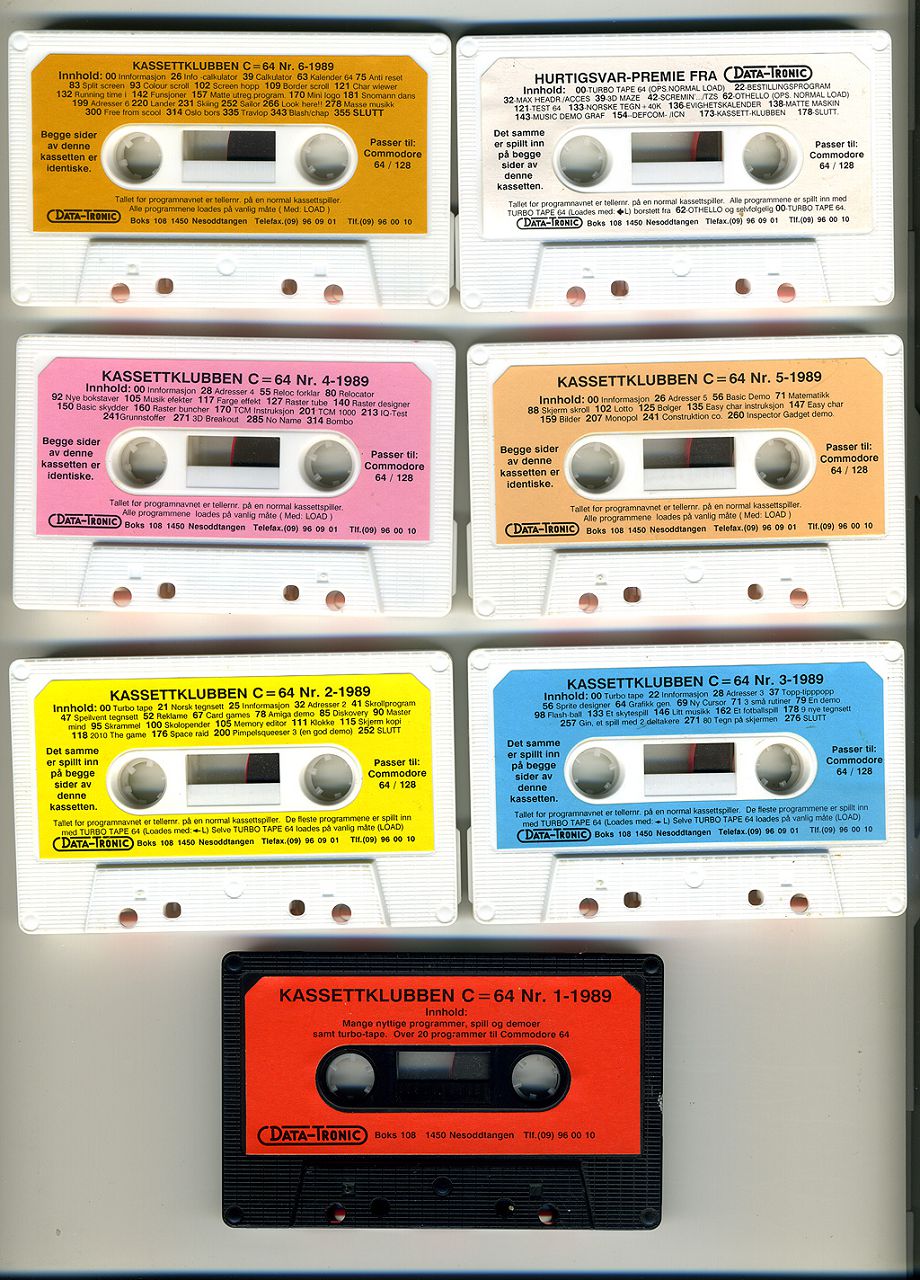 These 6 tapes + special price tape if one where fast to become a member of this computer based club back in 1989 apparently. Data-Tronic / DataTronic was a sales and distribution company with their own catalogs, newsletters, PD-disks and several User Clubs with subscription disks back in the 80's and 90's.