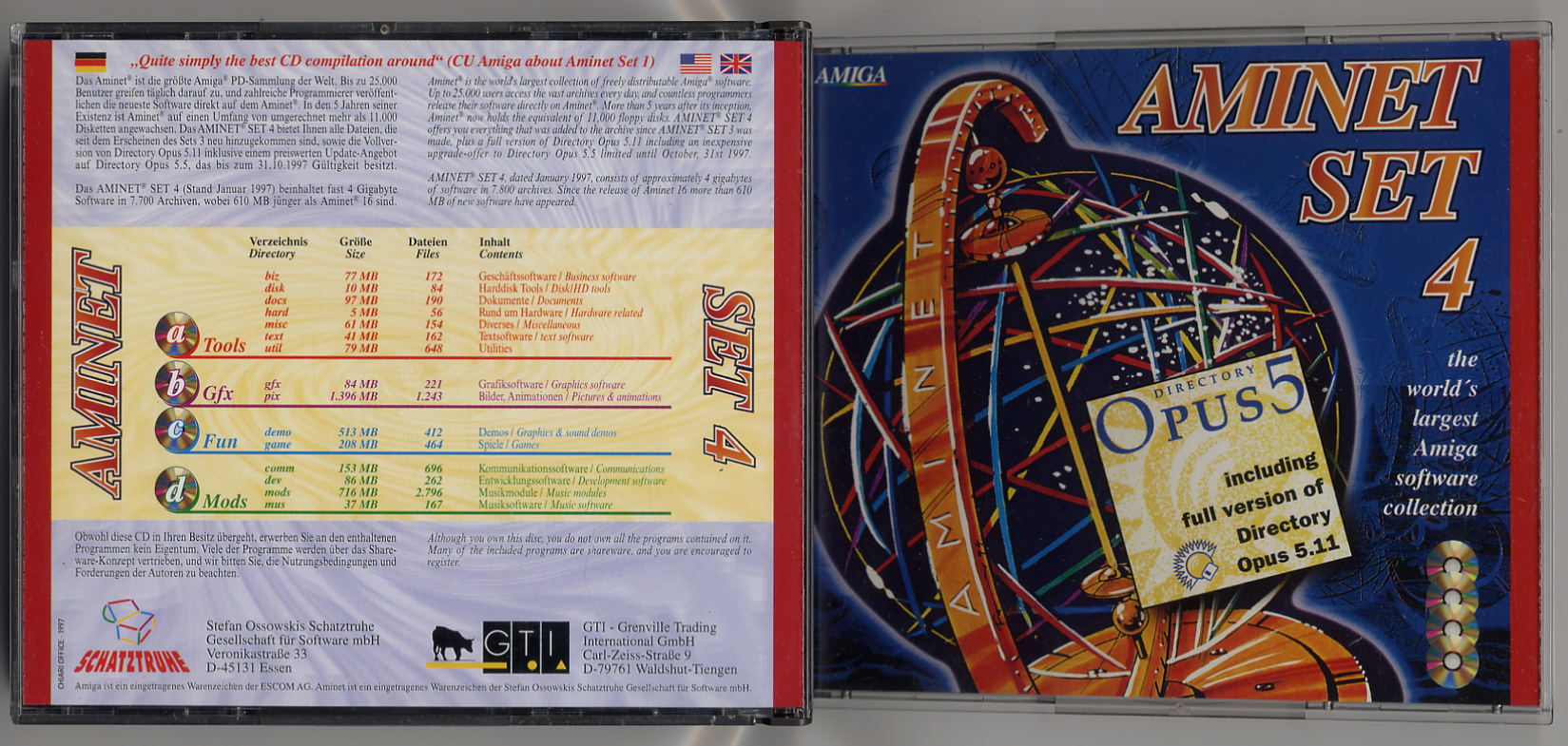 Aminet Set #1 to #12 contains 4 cd in every cd-cover, but from #48 they came out as single cd's upto #52 from which Internet took over the archiving and no more cd's were produced or sold in this style.