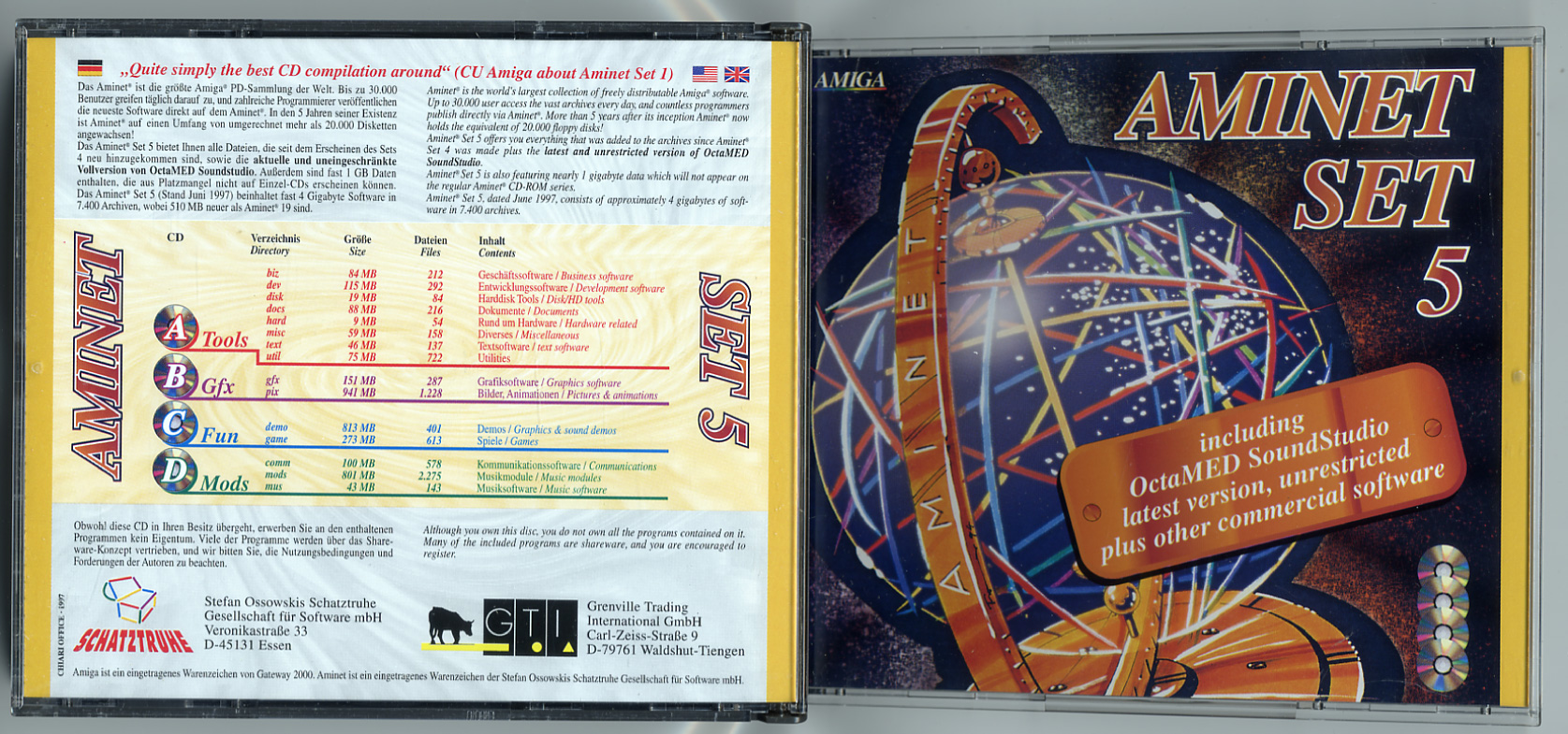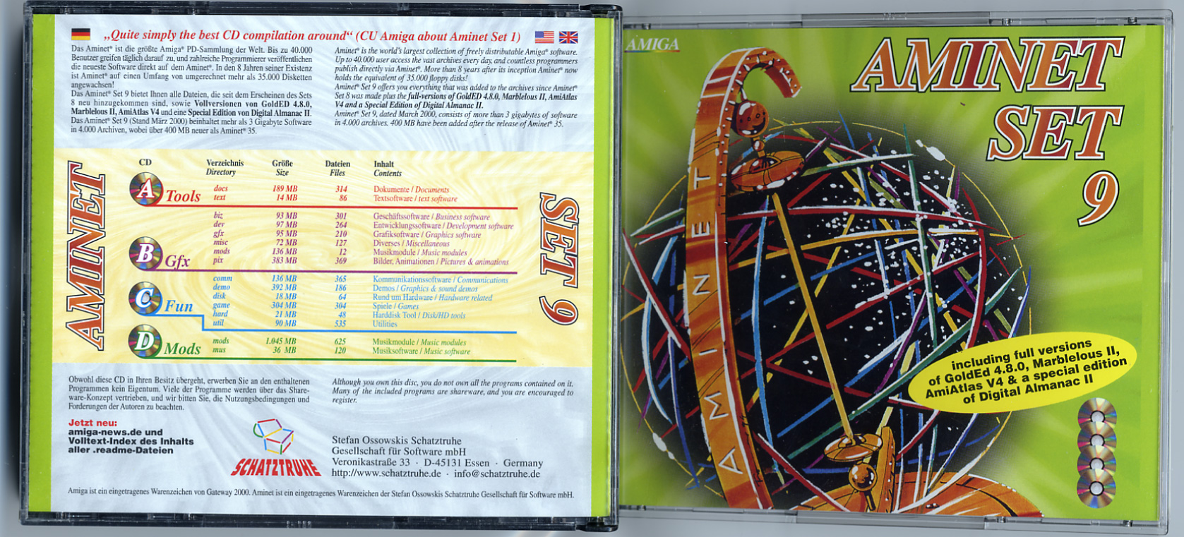 My own collection of the complete set of Aminet Set CD's released from 1995 to 2002 including a very deep text search database provided by me!