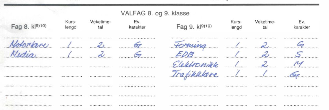 Aug 1989 > Jun 1990 = Grade 9 (Youth School) - Age 15 to 16